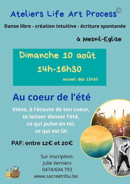 Le Life Art Process intègre les dimensions créatives et nature au travail du corps et à la danse libre... ce qui en fait une pratique complète qui a du sens pour moi et qui nourrit plusieurs de mes passions. Je suis pour le moment facilitatrice Life Art Process niveau 2 et suis en processus pour entamer ma 3e et dernière année.